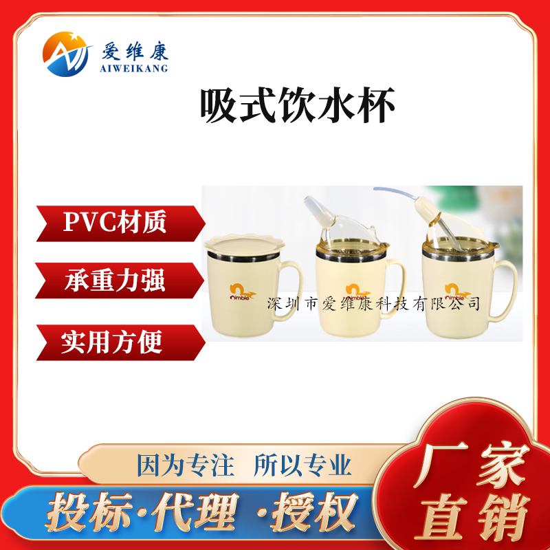 爱维康安全防溢漏吸管长度可调节喝水防呛吸式饮水杯
