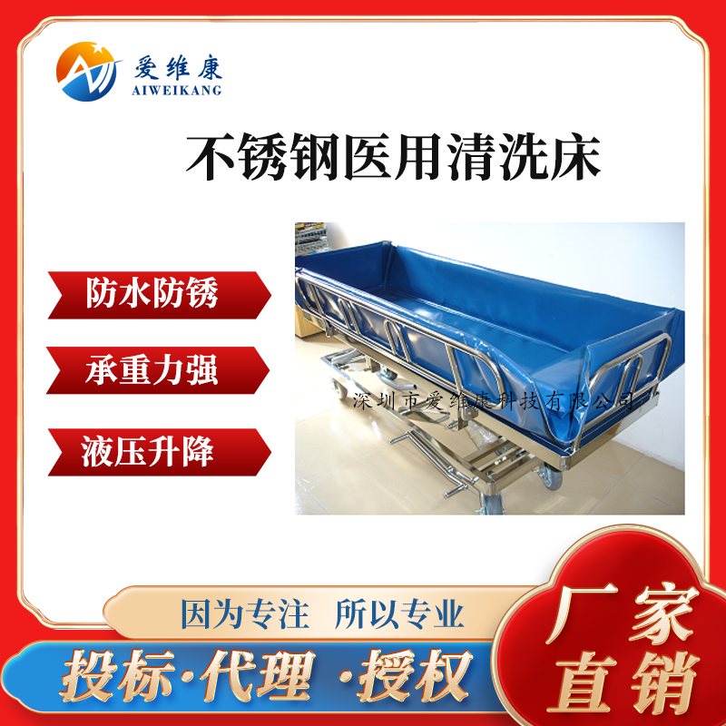 爱维康适合于全身没有创口的行动不方便人士不锈钢医用清洗床