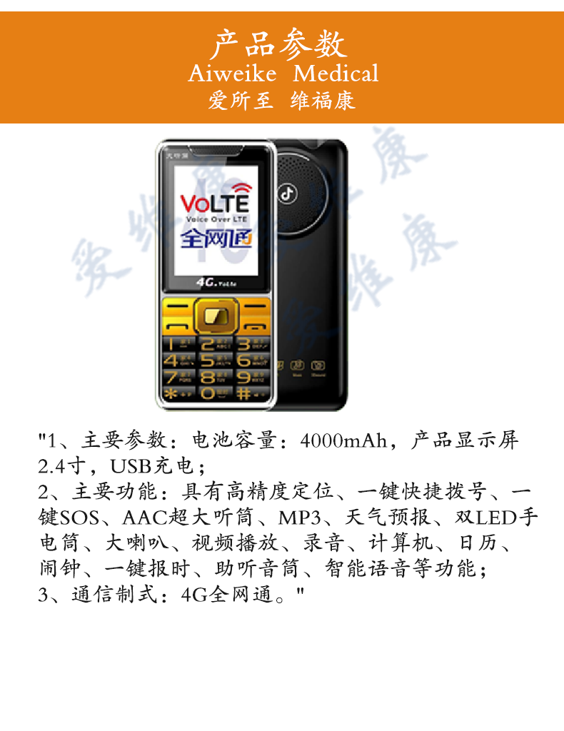爱维康高精度定位、一键快捷拨号老人智能定位手机-4G全网通